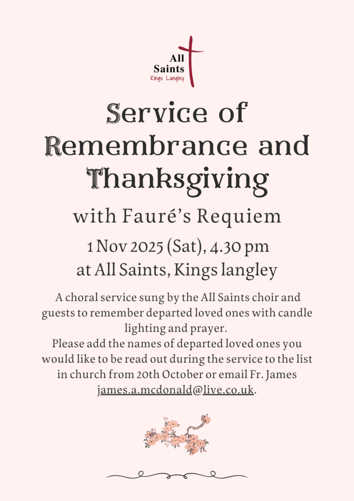 Your Parish Church of All Saints is open all day every day – usually from around 9.30am until 5pm – everyone is welcome to come in for a moment of quiet prayer or contemplation, to light a candle, or to admire the beautiful and historic building. Please be mindful of others and observe social distancing. There is hand sanitizer available at the doors and signage to help you visit safely.