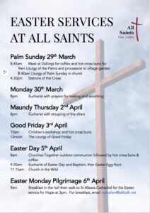 Watch the Sunday service live from All Saints at 9.30am each week – just click on the YouTube or Facebook logo, where you will also find recordings of previous services.